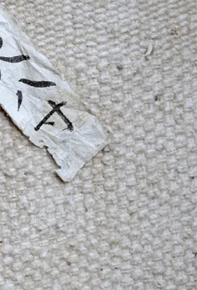 糸の太さ1ミリ強の縒りの弱い木綿の糸をたて糸2本、よこ糸2本で織った柔軟性のある木綿の帆布で、幅は2尺2,3寸から2尺5寸(約75センチ弱)。そしてその両端(耳)をわざと縦糸1本にして、しっかりと織っている点が最大の特徴です。その理由は、その幅の帆を横に3枚、4枚と紐でとじ合わせる(一反帆とする)際、その繋ぎ目が丈夫でないと裂けてしまって帆としての役に立たないのです。そうした両耳の織り方が違う、という特徴を備えていない帆布は、松右衛門帆とは言えません。
