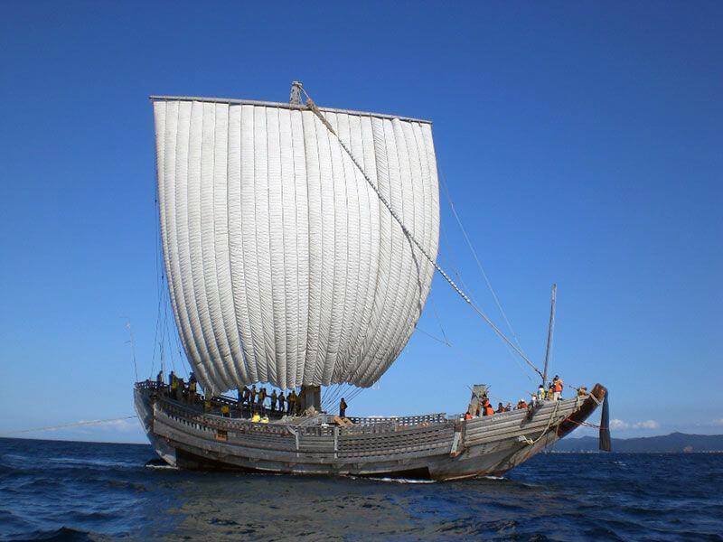 現在、オリジナルの松右衛門帆に最も近く再現された帆が、1999年大阪市制100周年を記念して建設された大阪「なにわの海の時空館」にある江戸時代初期の菱垣廻船、千石船を実物大に復元建造された浪華丸に使用されています。残念ながら、なにわの海の時空館は現在閉館中で一般には見ることが出来ません。