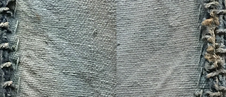 両端部分の織り方が違っているのが分かりますか?これが松右衛門帆であることの重要なポイント。>